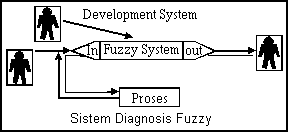 Bidang aplikasi sistem diagnosis ini biasanya suatu proses yang besar dan kompleks, sehingga sangat sulit dianalisa menggunakan algoritma eksak dan dimodelkan dengan model matematika biasa. Pada permulaan persiapan sistem, jumlah aturan yang digunakan ini biasanya sangat banyak. Namun pada tahap akhir, jumlah aturan akan lebih sedikit dan mudah dibaca. Ini merupakan sifat sistem pakar fuzzy, seperti yang dikatakan oleh Prof. Zadeh, bahwa sistem pakar fuzzy akan menggunakan aturan-aturan yang lebih sedikit dibandingkan sistem pakar konvensional sehingga mudah dibaca dan membantu menghindarkan inkonsistensi dan inkomplit sistem pengendali (4). Contoh dari sistem pakar fuzzy ini adalah proyek diagnosa kebocoran-H2 pada sistem pendingin high-performance generator. Salah satu contoh aturan sistem diagnostik ini adalah : "Jika konsumsi H2 tinggi dan daya yang tersedia rendah dan suhu gas rendah dan tekanan H2 generator tidak rendah/menurun, maka tingkatkan konsumsi H2 (untuk menurunkan temperatur)" Yang perlu diperhatikan pada sistem diagnostik ini adalah, tidak berlakunya proses defuzzifikasi, karena sistem ini hanya menghasilkan sifat keluaran berupa aproksimasi linguistik yang merupakan suatu pernyataan atau jawaban yang mudah dipahami oleh operator. KesimpulanTeknologi sistem fuzzy telah berkembang cukup jauh, dan memberikan berbagai keuntungan dan perbaikan unjuk kerja pada sistem kendali yang pernah ada. Perkembangan sistem ini menuntut mutu sumber daya manusia yang berpendidikan, seperti ilmuwan dan enjineer yang ahli di bidang teknik sistem fuzzy dan tidak lepas dari kondisi pendidikan dan kelengkapan alat-alat yang mendukung pengembangan teknologi ini.Di bidang aplikasi fuzzy, tidak hanya terdapat sistem kendali fuzzy, melainkan juga ada klasifikasi fuzzy dan diagnosis fuzzy. Jadi sistem fuzzy pada keadaan riil, mempunyai ragam metode dan strategi pengembangan yang dapat diterapkan pada masalah-masalah kendali saat ini. Sumber Pustaka