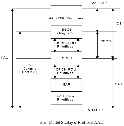AAL5 dibagi menjadi SAR dan CS, CS dibagi lagi menjadi CPCS dan SSCS.
